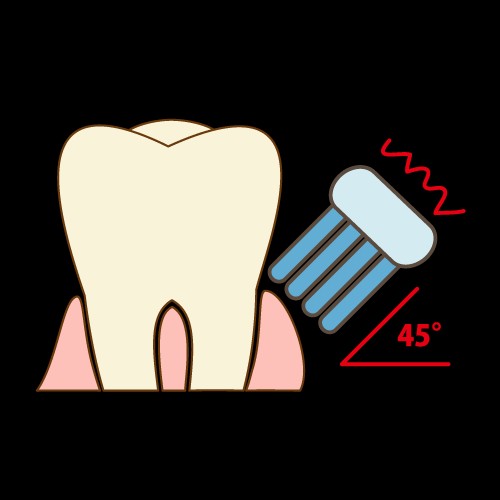 歯ブラシを歯に直角にあて、円を描くように磨いていきます!