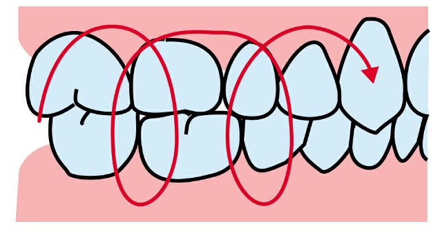 これも、小刻みに1歯ずつ10回以上左右に動かしてください。