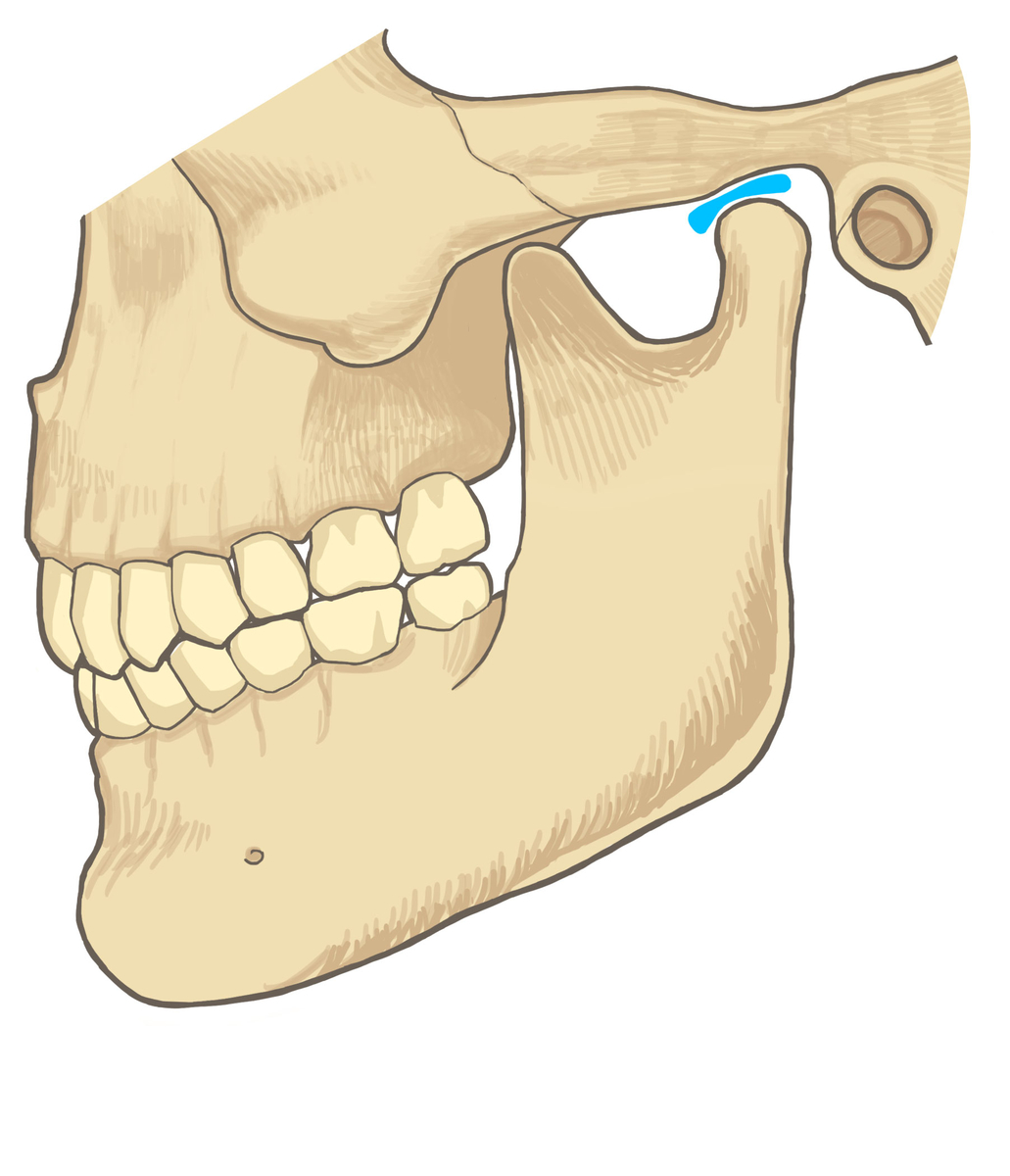 顎関節とは、耳の少し前あたりにある頭蓋骨と下顎のつなぎ目のことを言います。