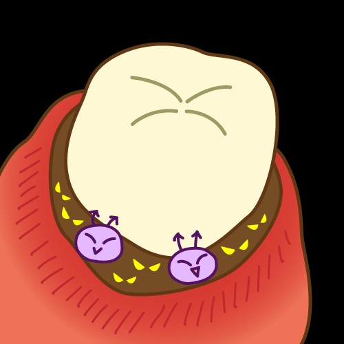 腫れた歯と歯肉との間に歯垢が溜まり悪化する