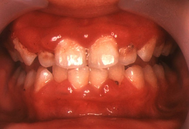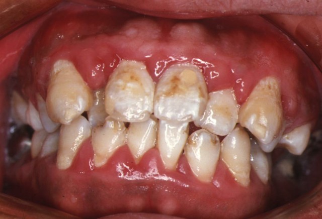 歯と歯の間の歯肉が丸みを帯び膨らんでいる。